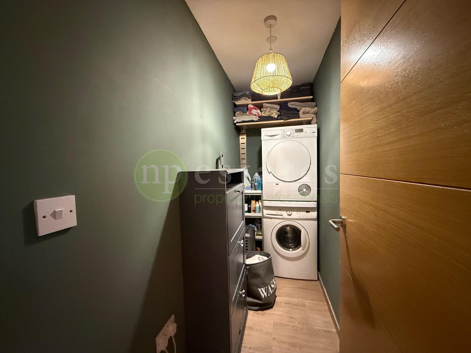 Practicality has been well considered, with two internal storage rooms that serve as a utility area, boiler room, and additional storage for seasonal items. A private parking space is also included, conveniently located near the lift within the secure residents’ garage.