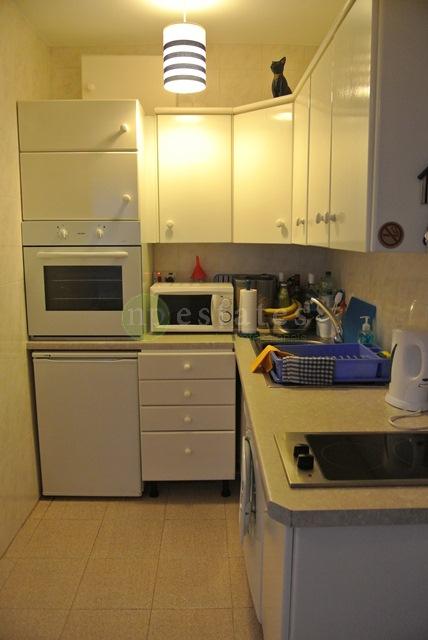 The interior includes a living room with an open plan fitted kitchen, one double bedroom with fitted wardrobes, and a bathroom. The apartment is presented in good condition throughout.