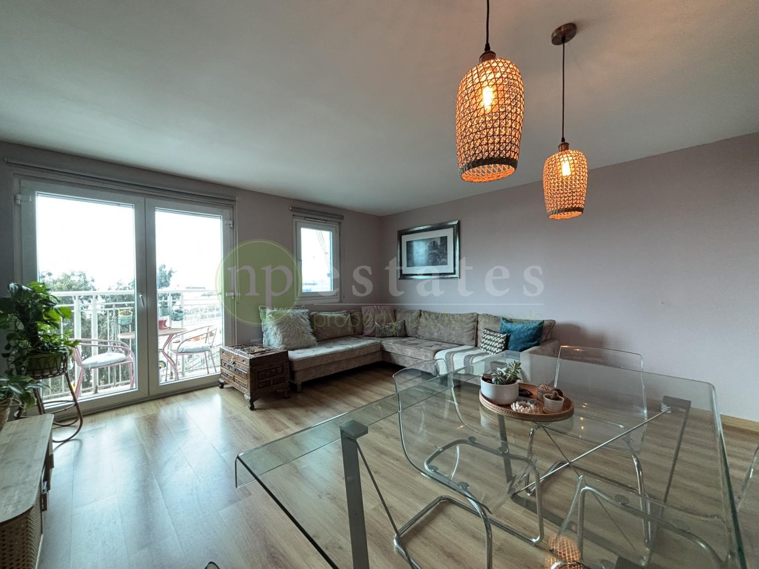 The separate kitchen is fully equipped and designed with functionality in mind, while the bright living and dining area creates a welcoming atmosphere and opens onto a private balcony with beautiful sea views. Located on the ground floor, the apartment benefits from easy access and a thoughtful layout suited to modern lifestyles.
