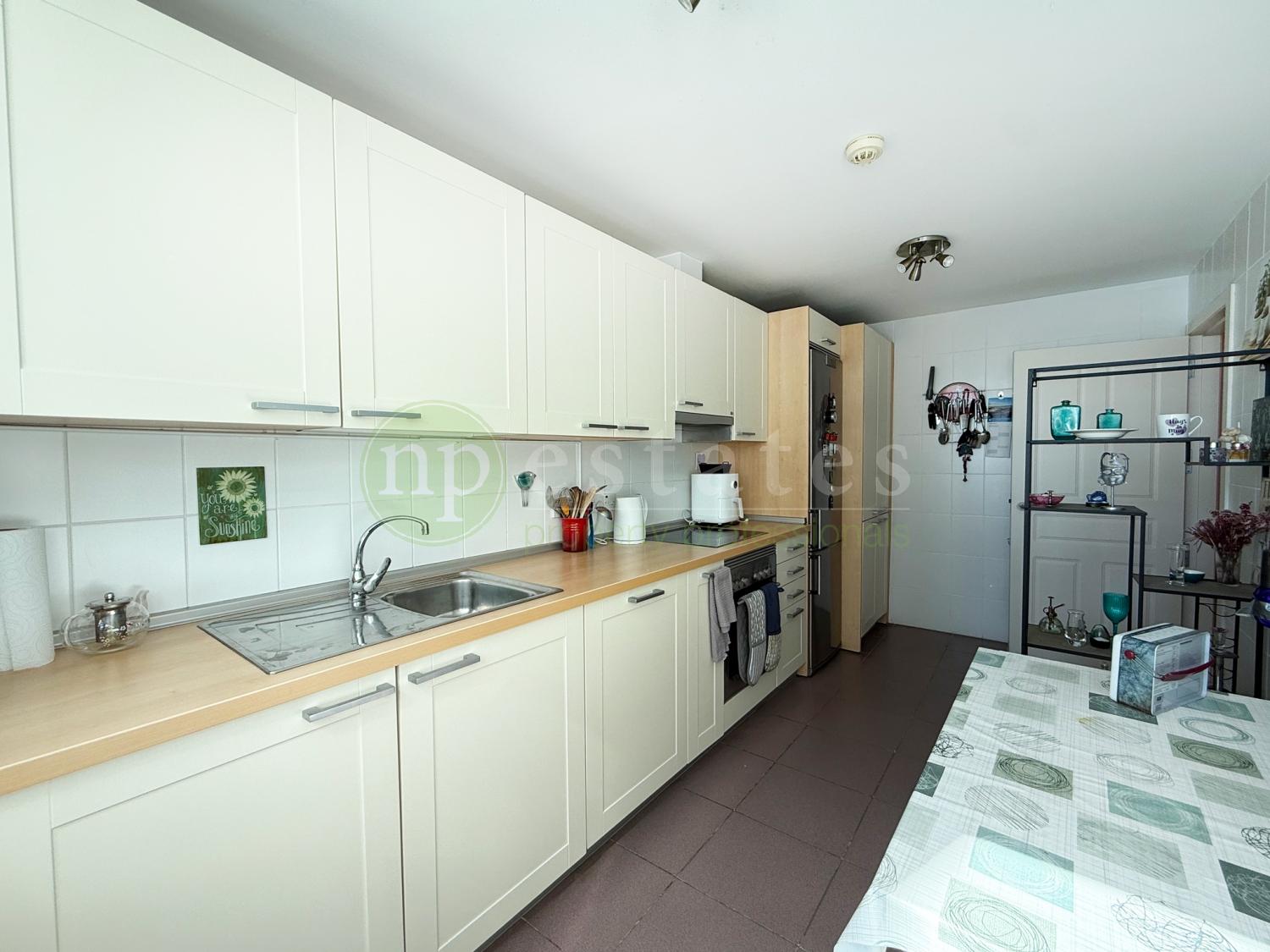 The property benefits from a predominantly north facing aspect from the principal rooms, with additional south facing light from the kitchen window. The layout is well proportioned and practical, comprising a generous kitchen, a spacious living room with full height sliding windows, and direct access to a private outdoor area.