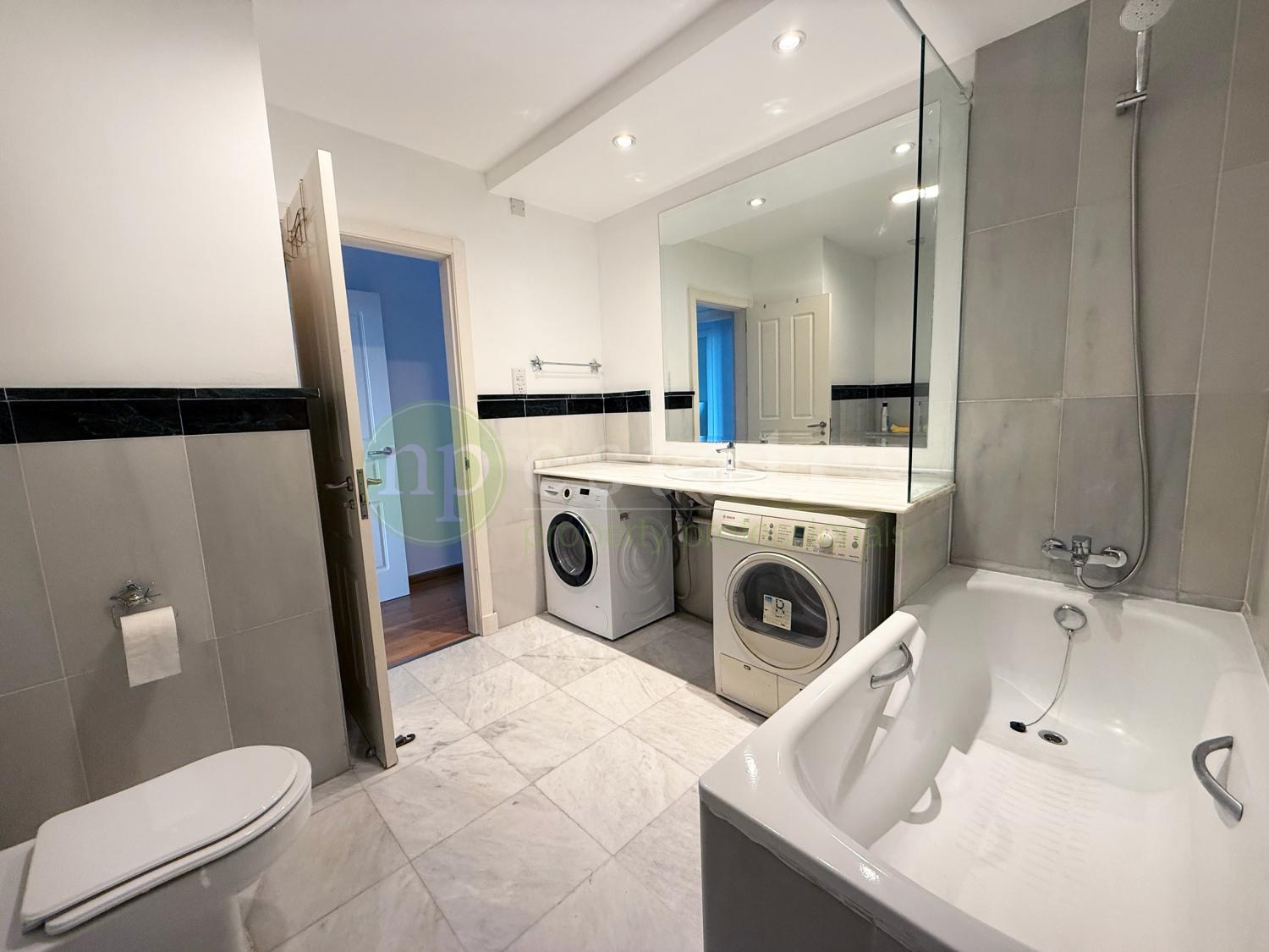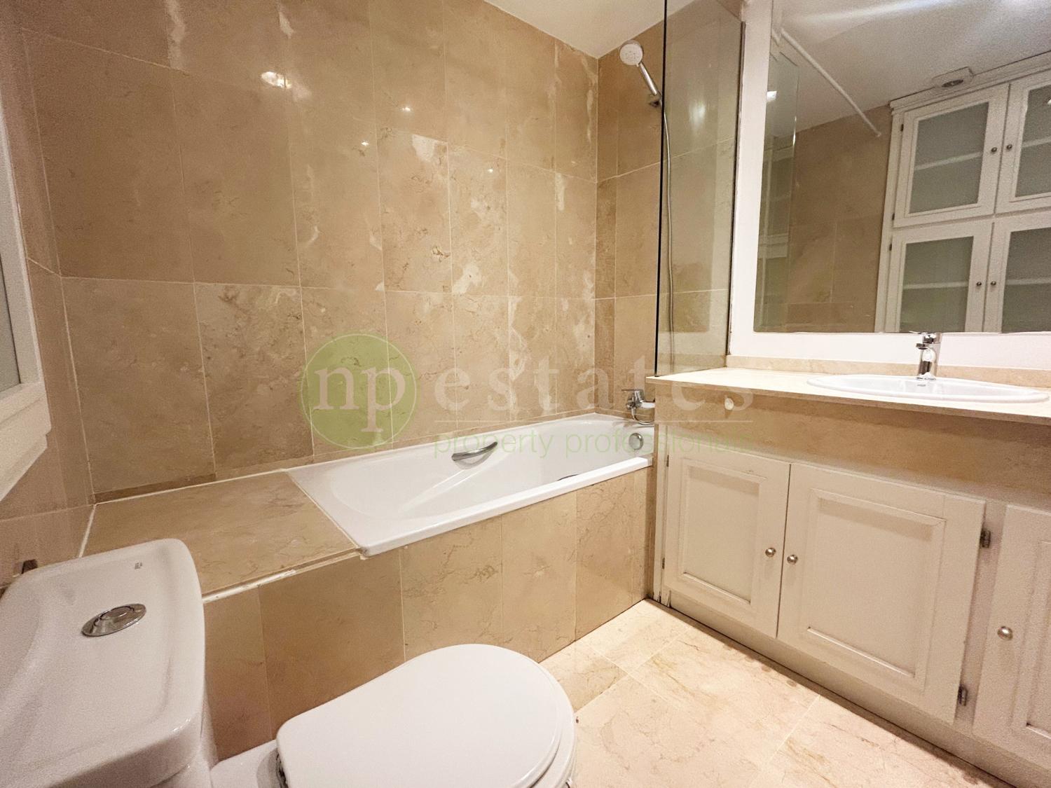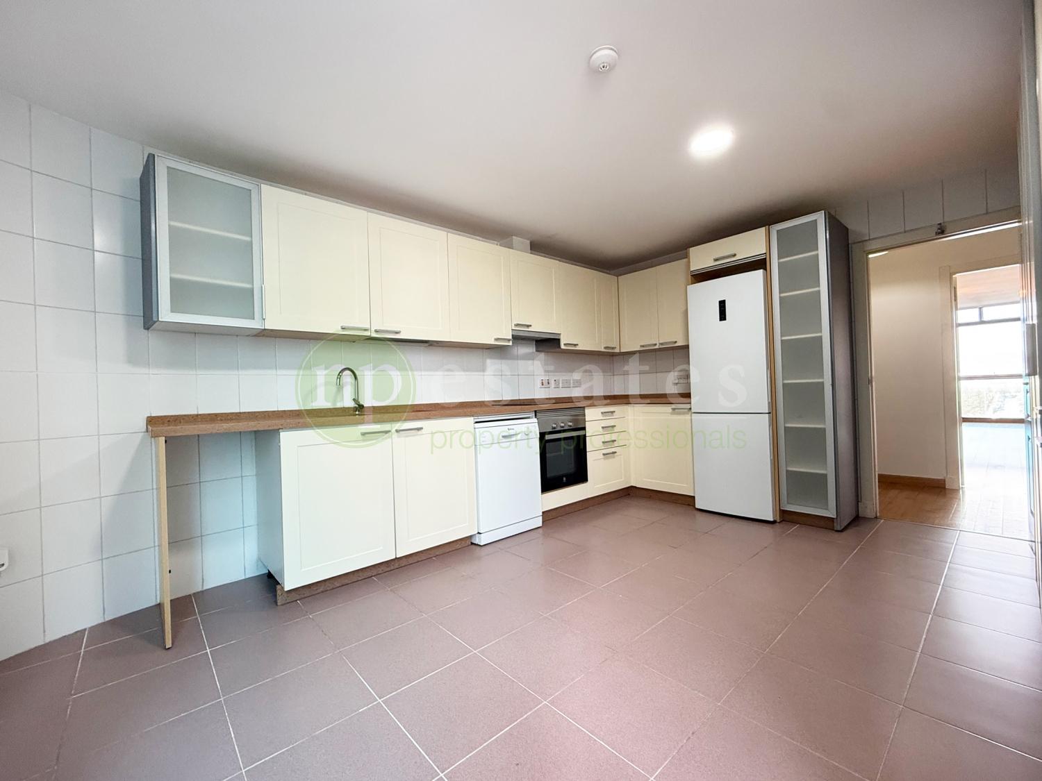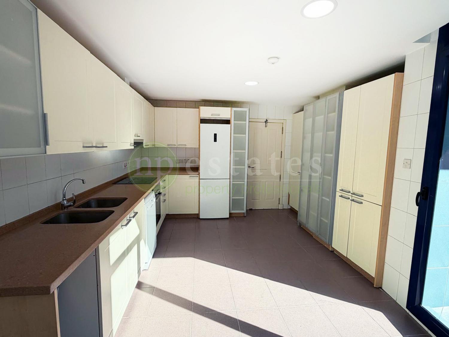 The apartment offers generous internal proportions together with two private terraces. The principal reception room opens directly onto a terrace, providing valuable outdoor space and natural light. A second terrace is accessed from the kitchen, creating an additional external area suited to everyday use.