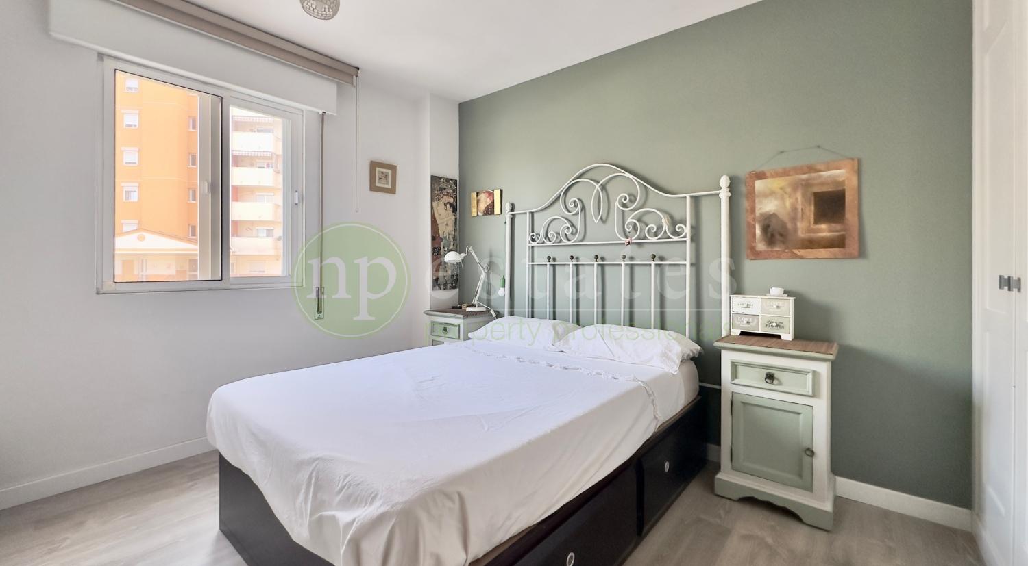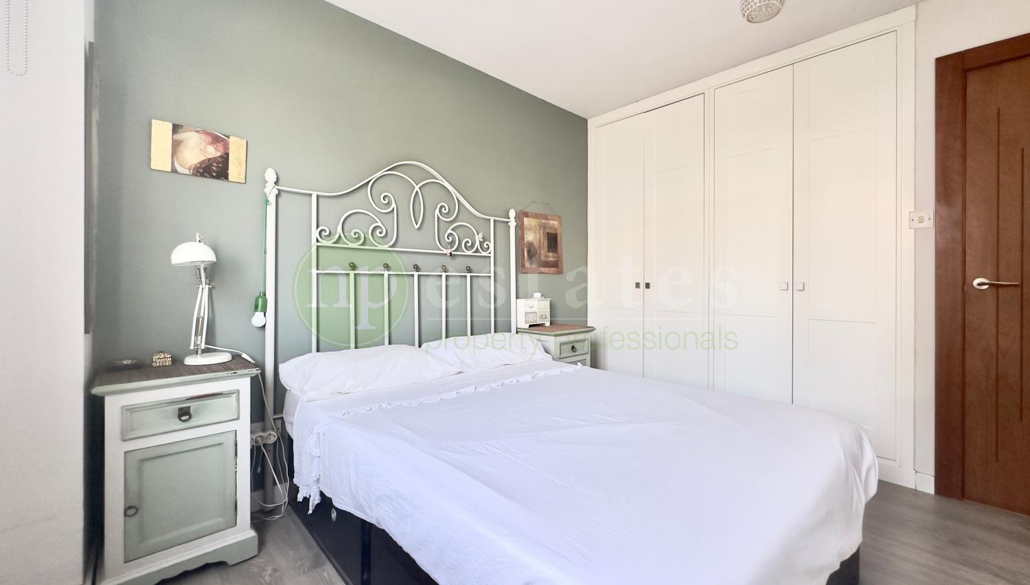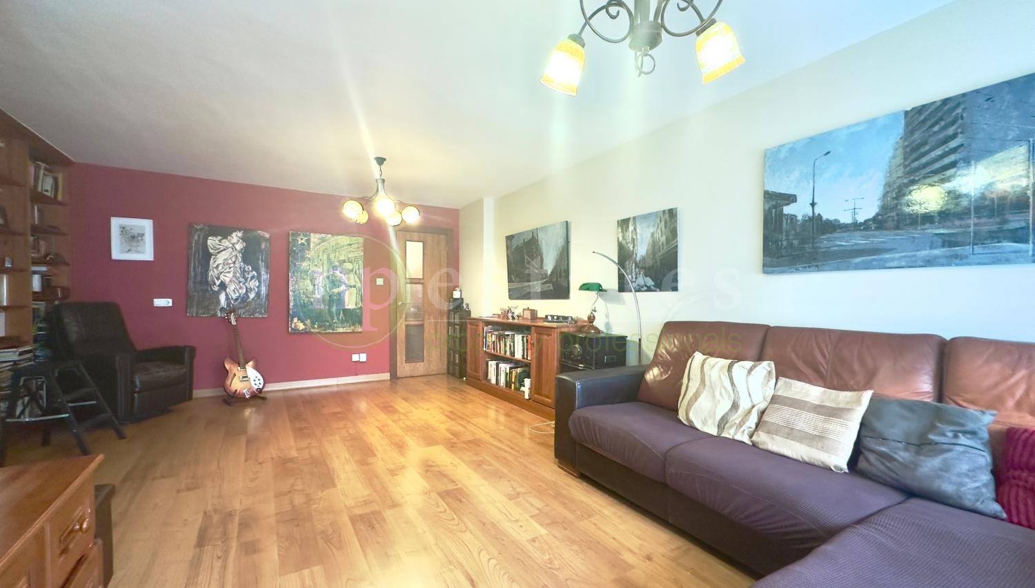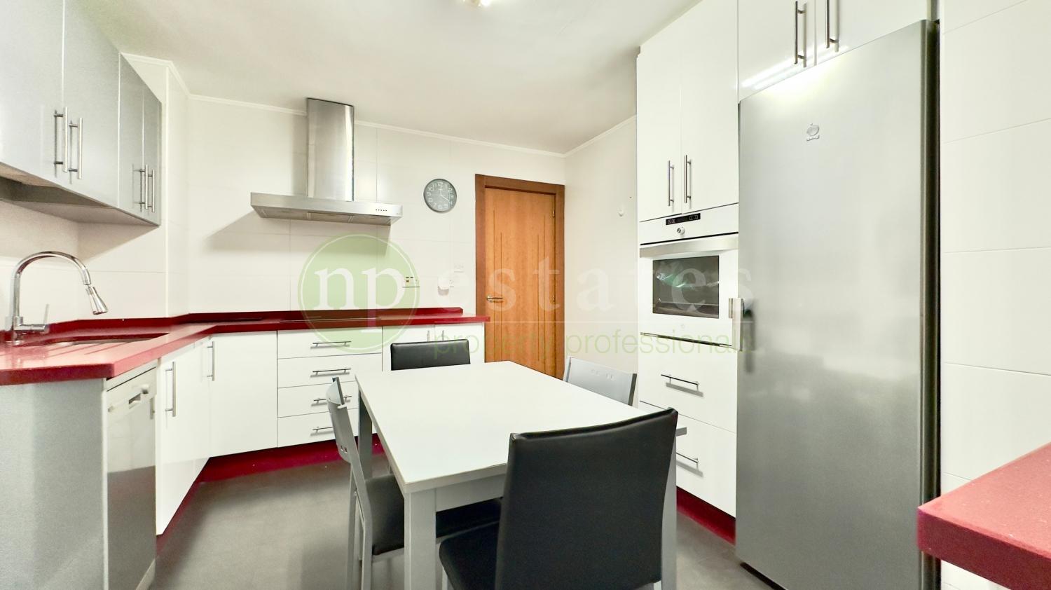 Located on a low floor, the apartment enjoys good natural light and a practical layout. The property includes a spacious living room, a separate fully fitted kitchen, and ample built-in storage throughout.