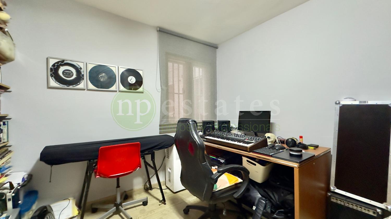 Accommodation comprises a large master bedroom with fitted wardrobes, a single bedroom, and a third room currently used as a music studio, which can easily be converted back into a double bedroom. The family bathroom is well-proportioned and fitted with a bathtub.