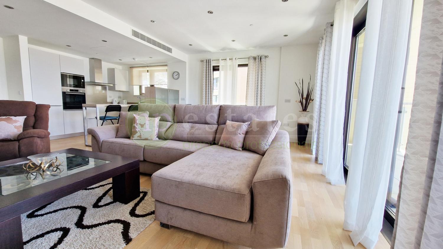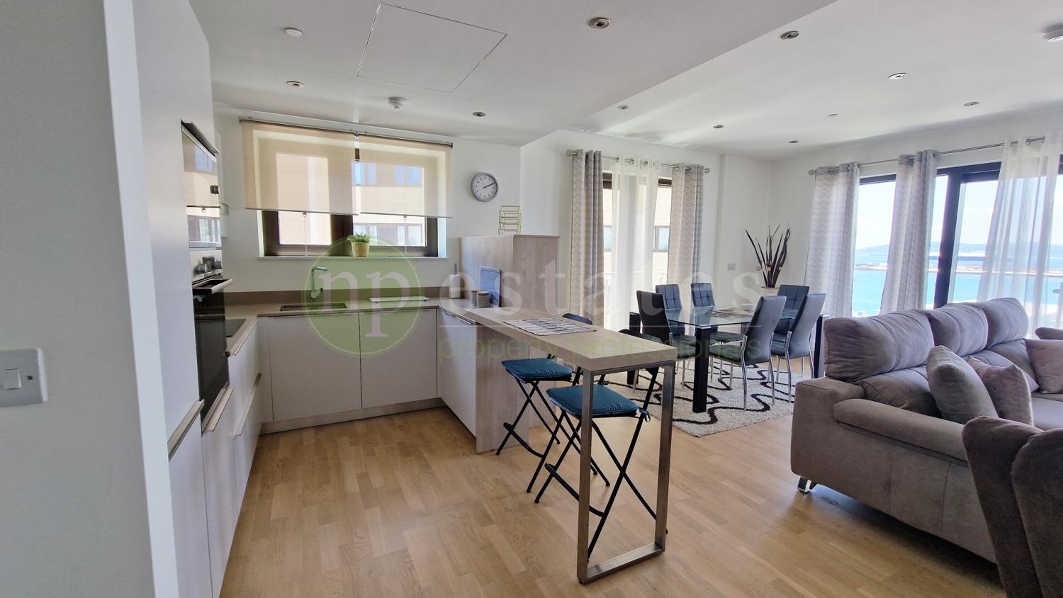 A spacious 3 bedroom, 2 bathroom apartment is available to rent in Gibraltar's King's Wharf. The apartment is located on a mid floor of the luxury Quay 29 development and provides spectacular views of the Bay and Rock.