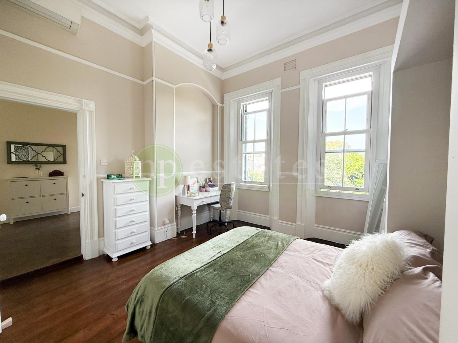 Original features have been retained, including high ceilings with decorative coving and hardwood flooring, and parquet floors in the entrance, maintaining a consistent sense of scale and structure throughout. To the rear, a private internal patio provides a sheltered outdoor area. A separate utility room sits outside the main living space and includes laundry facilities and an additional toilet.