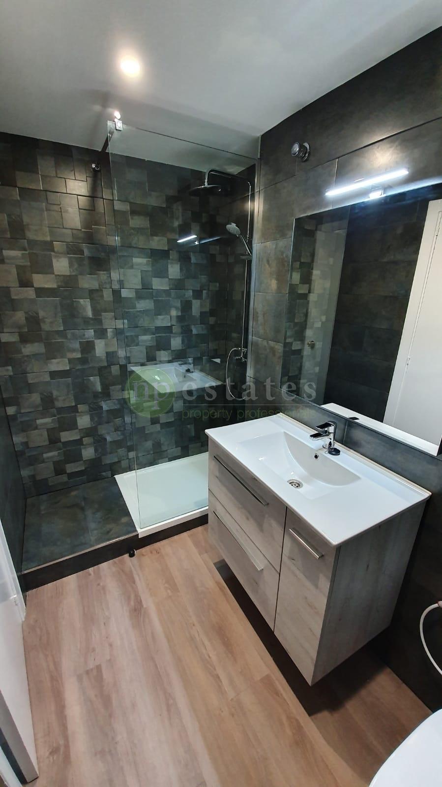 The bathroom has been recently refurbished and is fitted with a modern walk-in shower. The double bedroom is generously proportioned and includes fitted wardrobes, providing good storage.