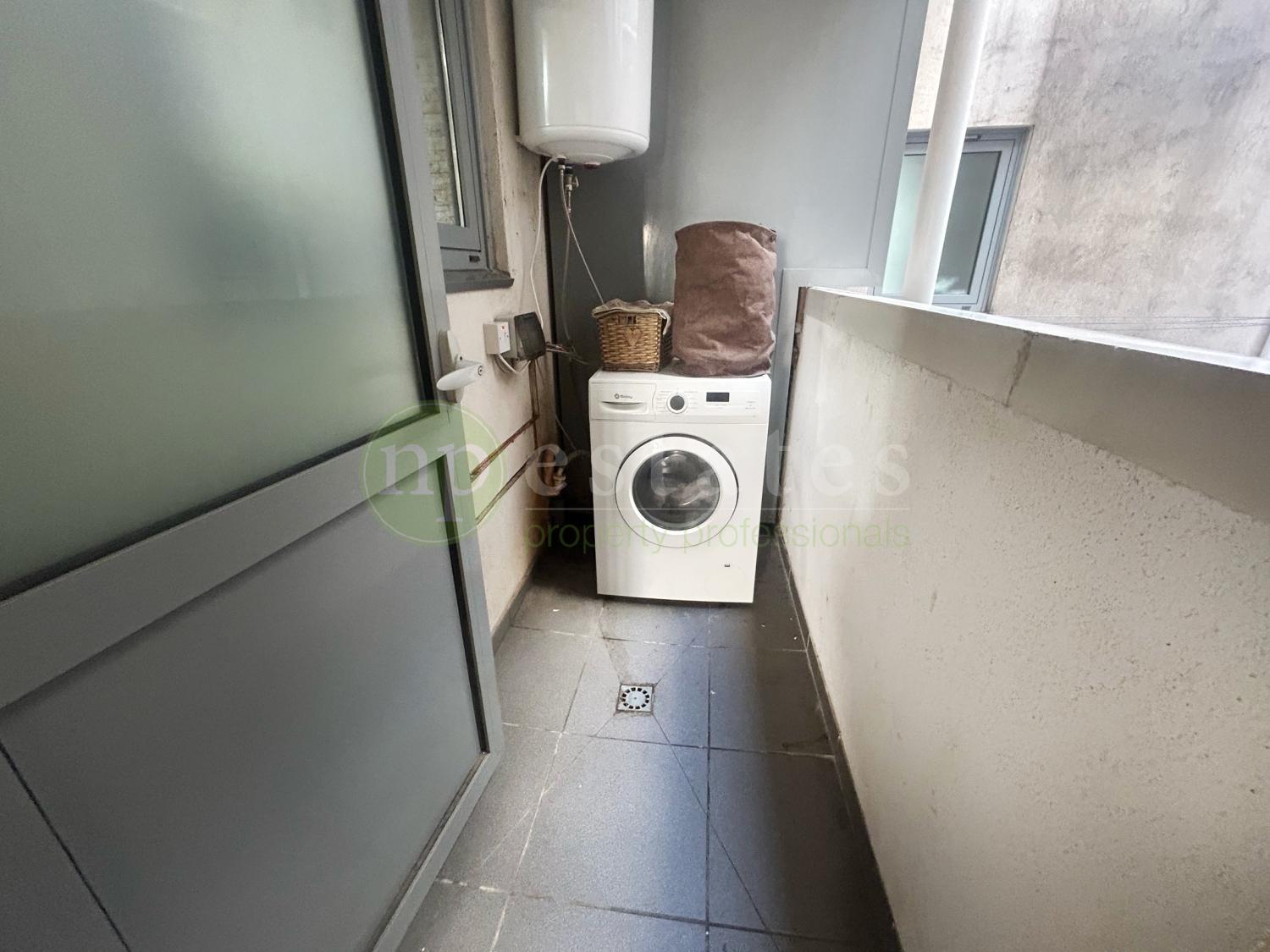 The property offers a practical layout comprising an open plan kitchen and living room, which opens directly onto a private balcony enjoying sea views. A separate utility room provides additional storage and laundry space, enhancing day to day functionality.