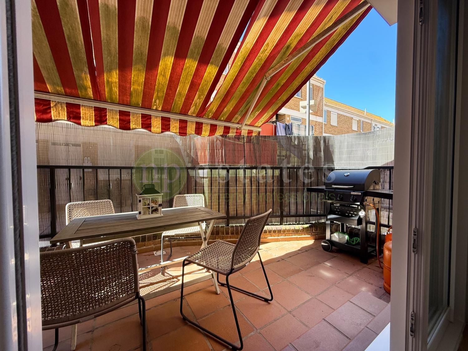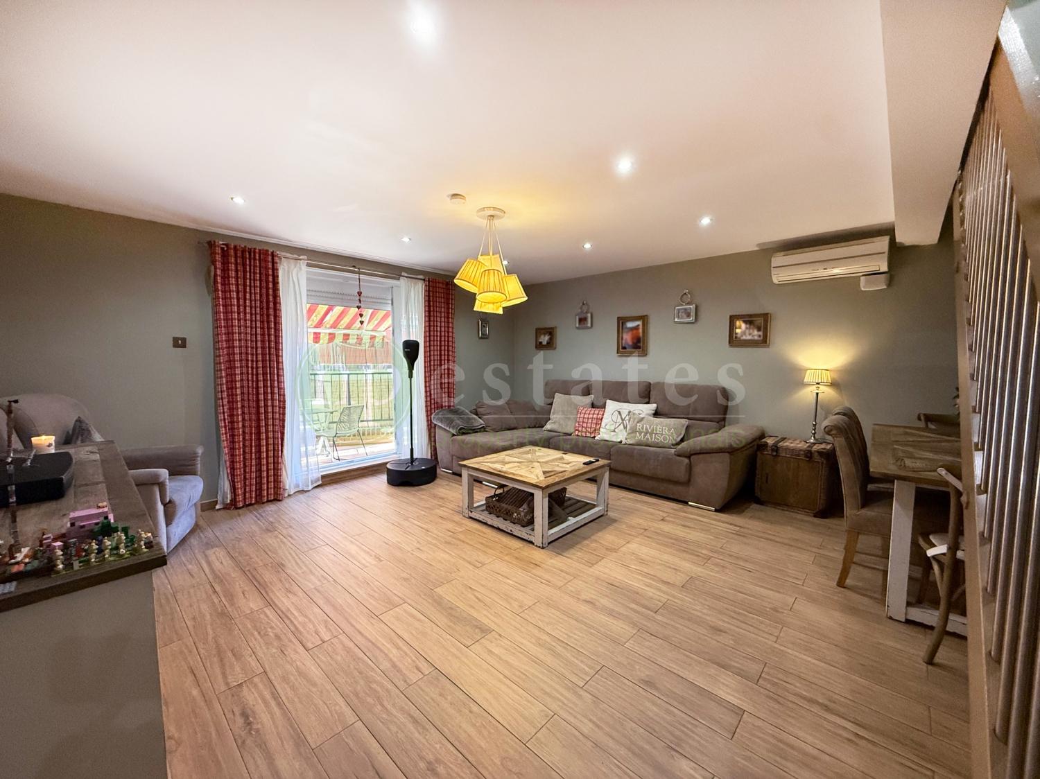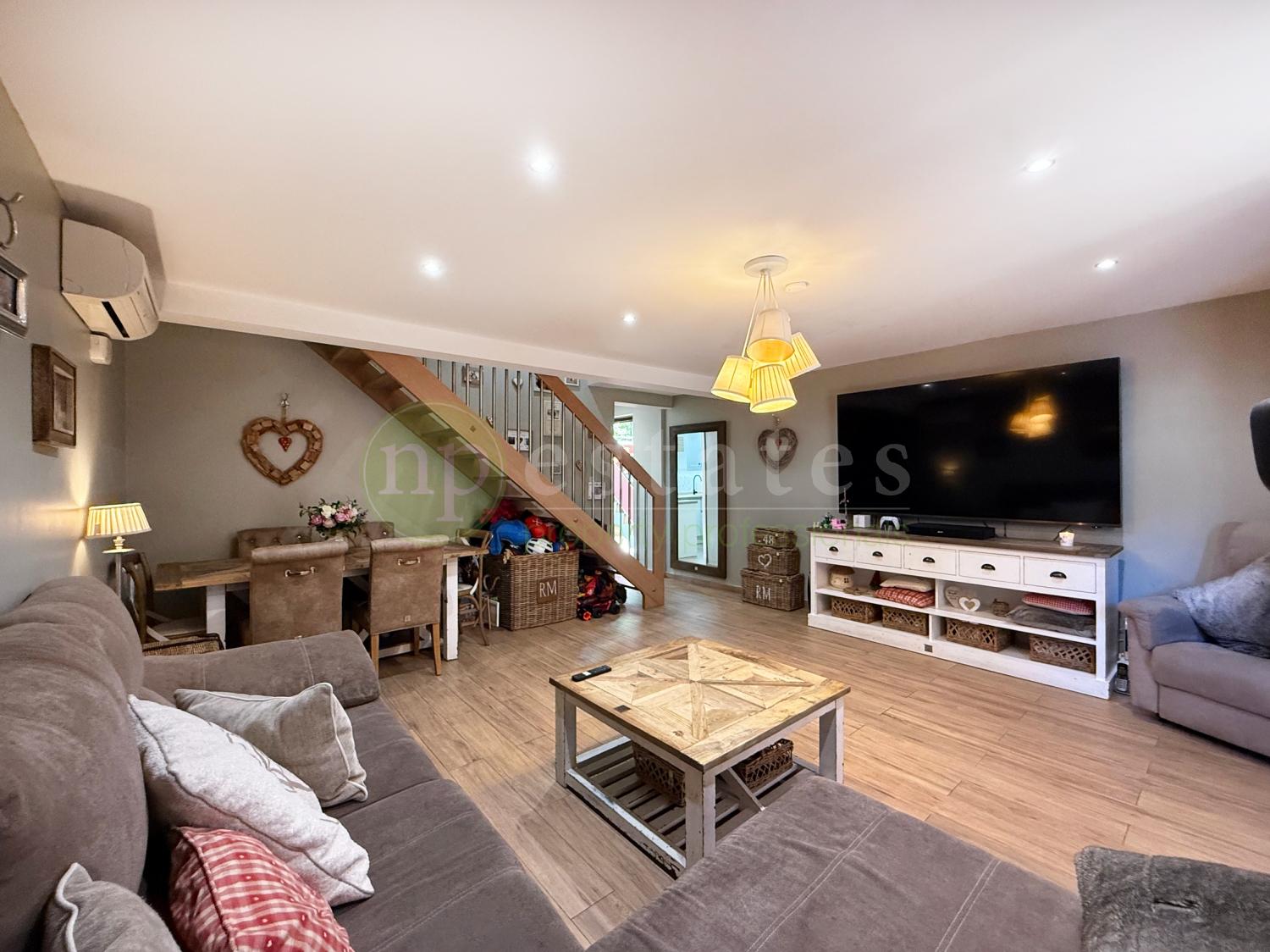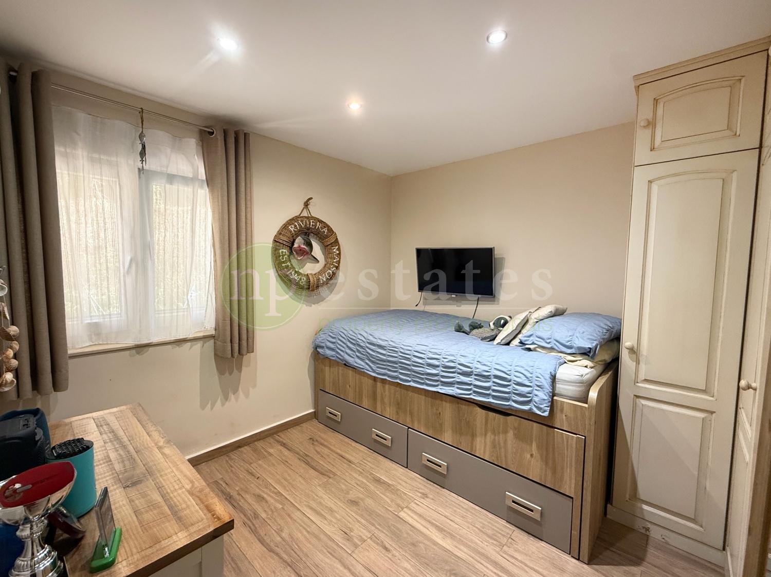 All windows are double glazed with tilt and turn functionality and newly fitted mosquito nets, enhancing both comfort and efficiency. The layout offers three bedrooms, generous fitted wardrobe space and a bright living area arranged over two levels.