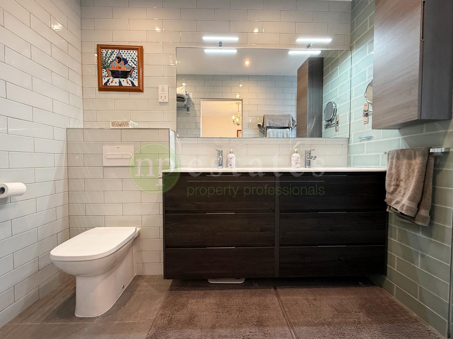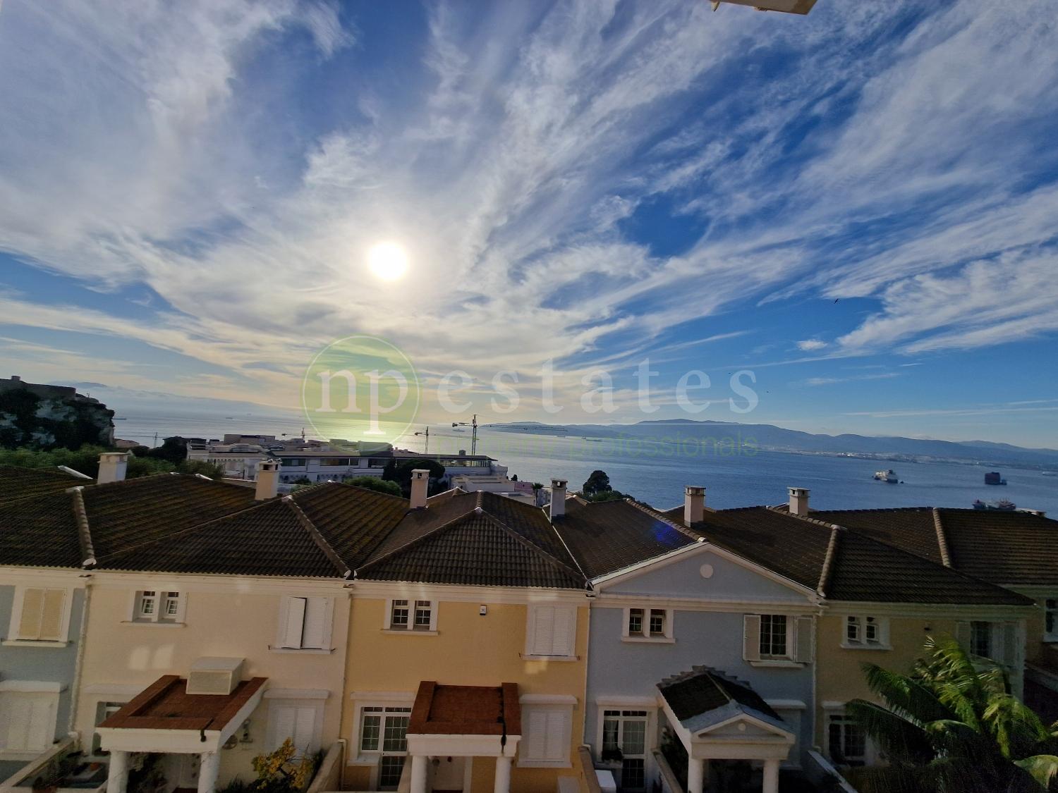 Upstairs, there are four double bedrooms and two bathrooms, with the master bedroom featuring an en-suite. This west-facing and elevated home enjoys open sea views across the Strait, capturing Gibraltar’s evening light beautifully.