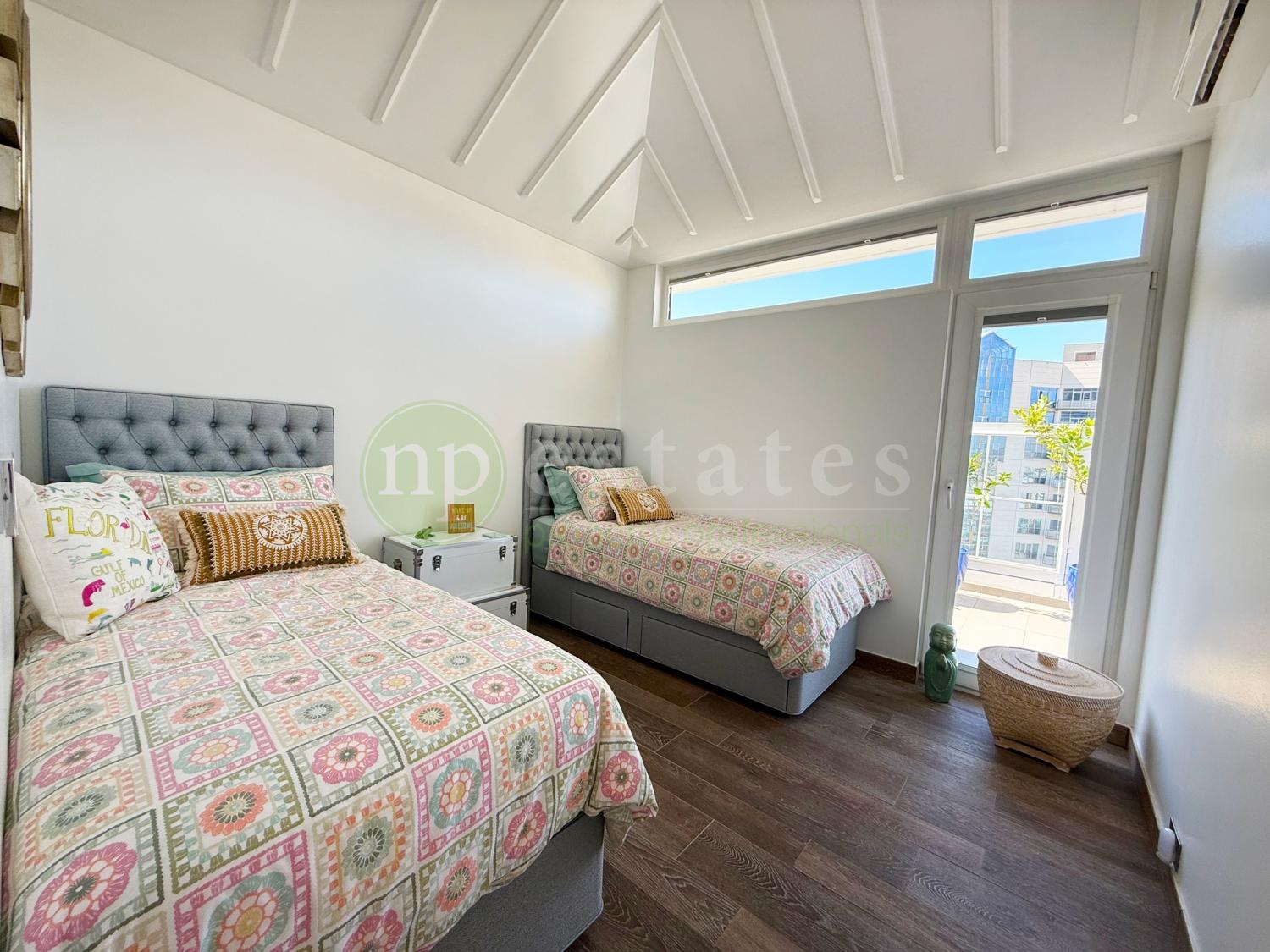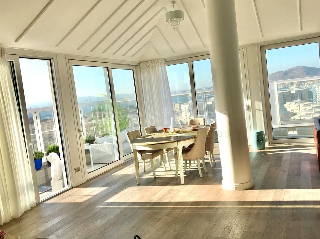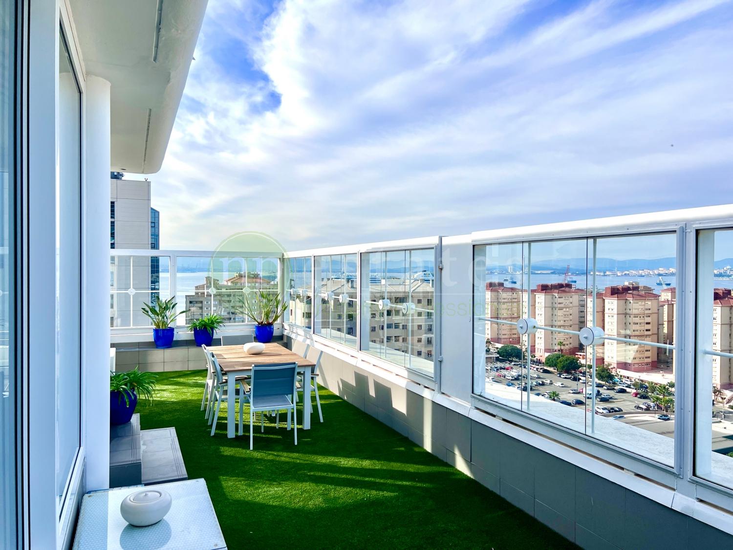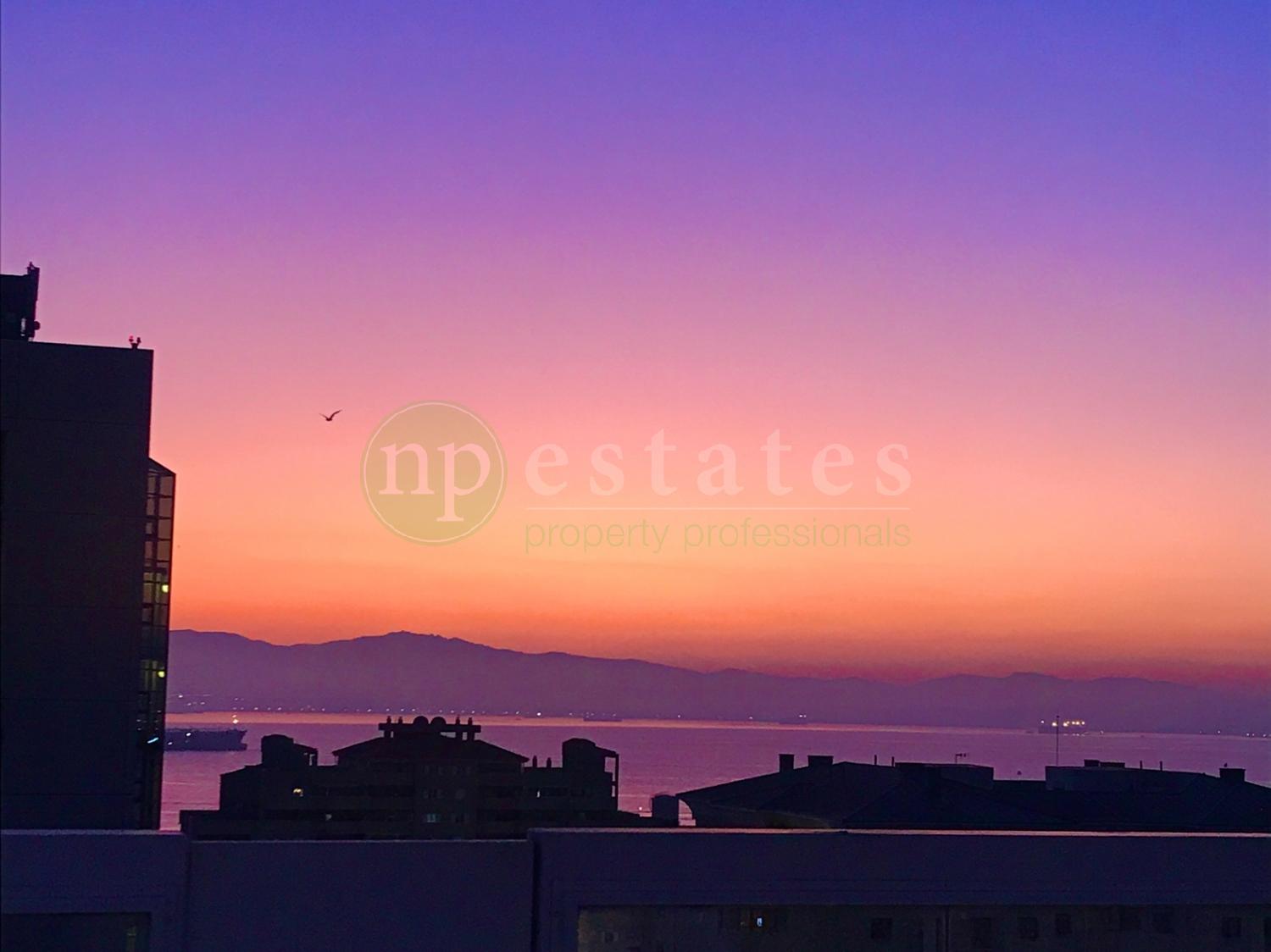 NP Estates is delighted to offer this bright and spacious penthouse in Eurotowers, located in the centre of Gibraltar’s business district. A rare residence, it enjoys uninterrupted views of the Bay of Gibraltar, the Rock, and across to Africa.