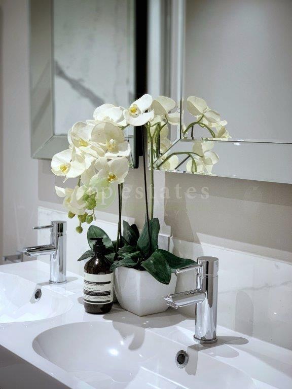 The principal bedroom is well proportioned with fitted wardrobes and en suite facilities. All bedrooms are arranged with privacy in mind, each supported by its own bathroom provision. Air conditioning and heating are installed throughout.