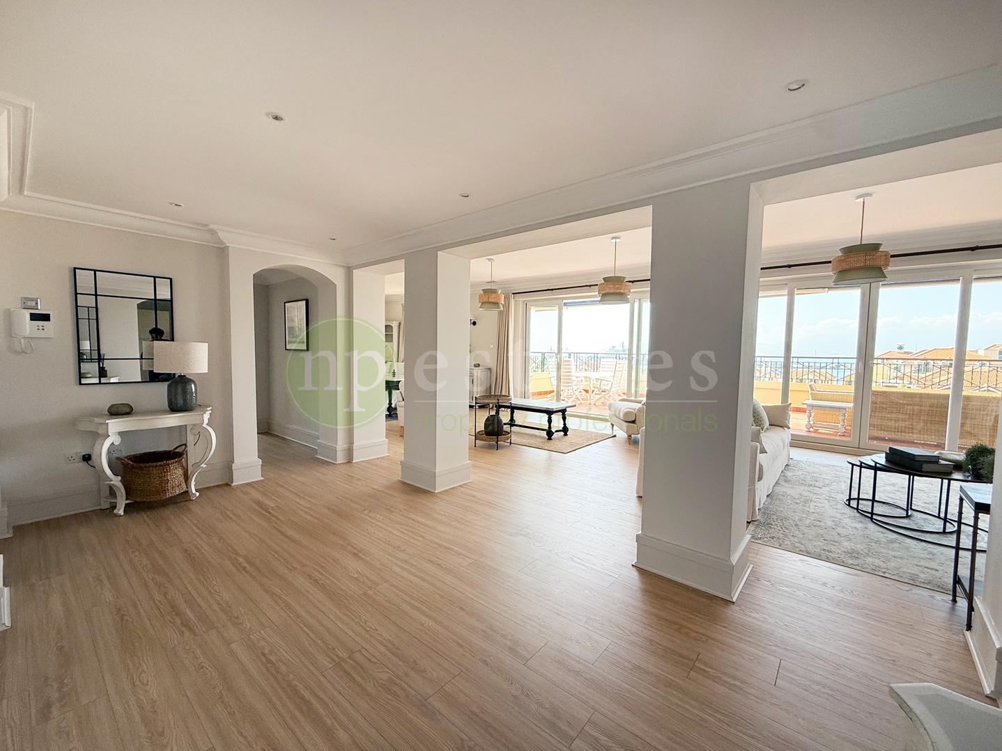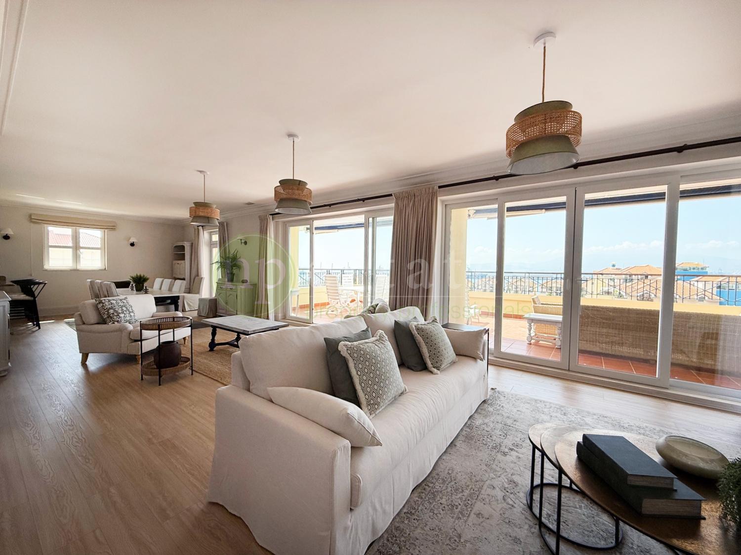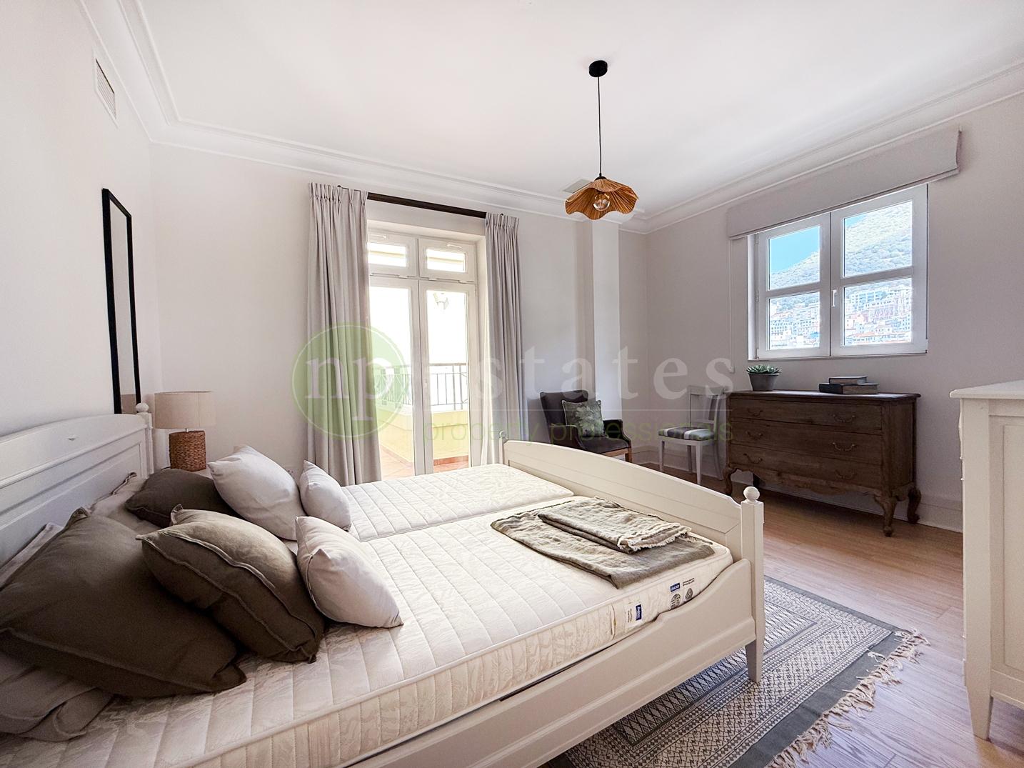 This elegant home enjoys spacious interiors throughout, with a bright open-plan living and dining area leading to a private terrace showcasing sea and Rock views. All bedrooms are generously sized, with ample fitted storage, and en-suite bathrooms.