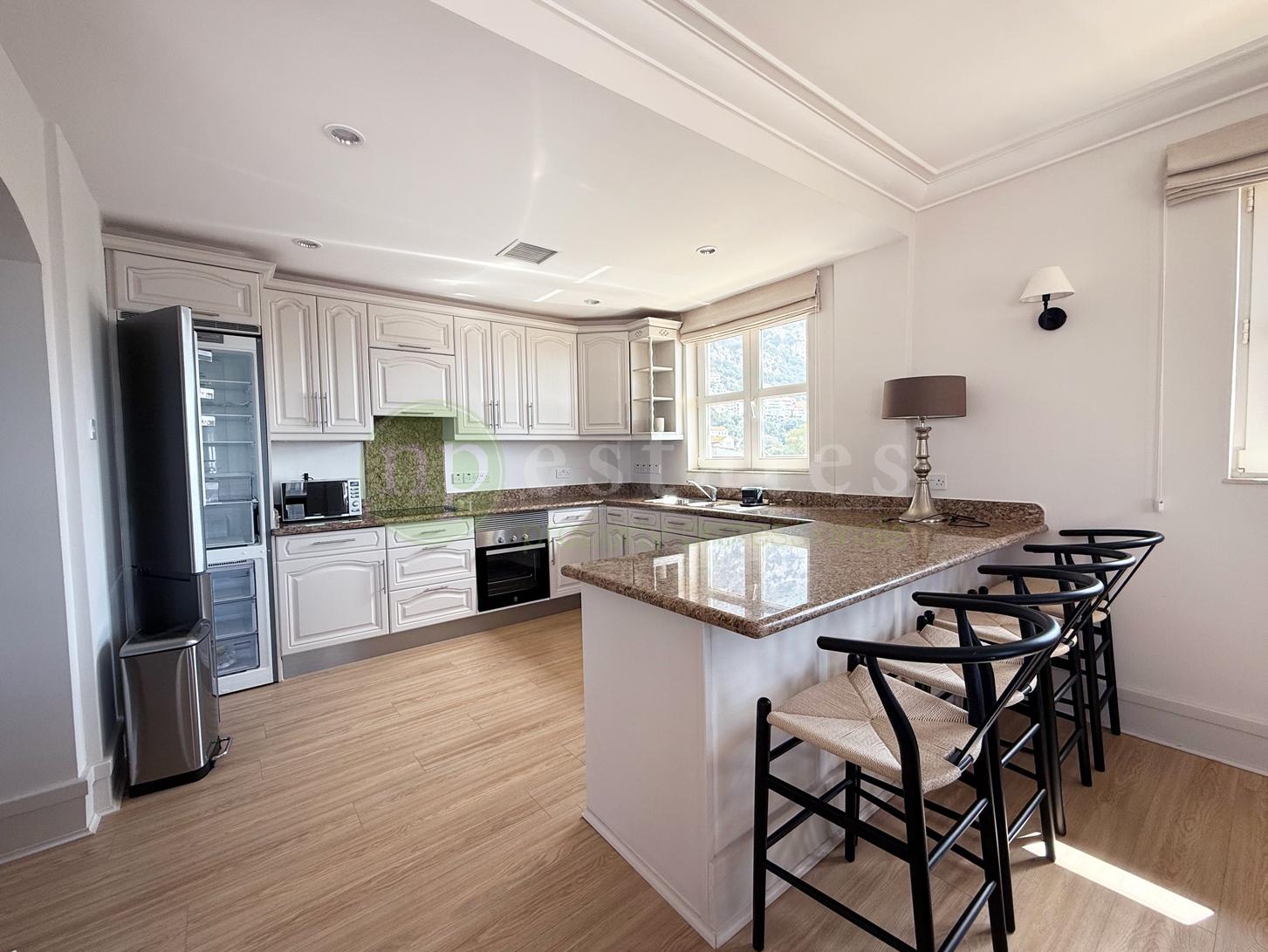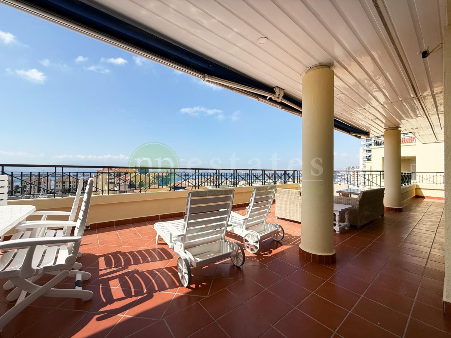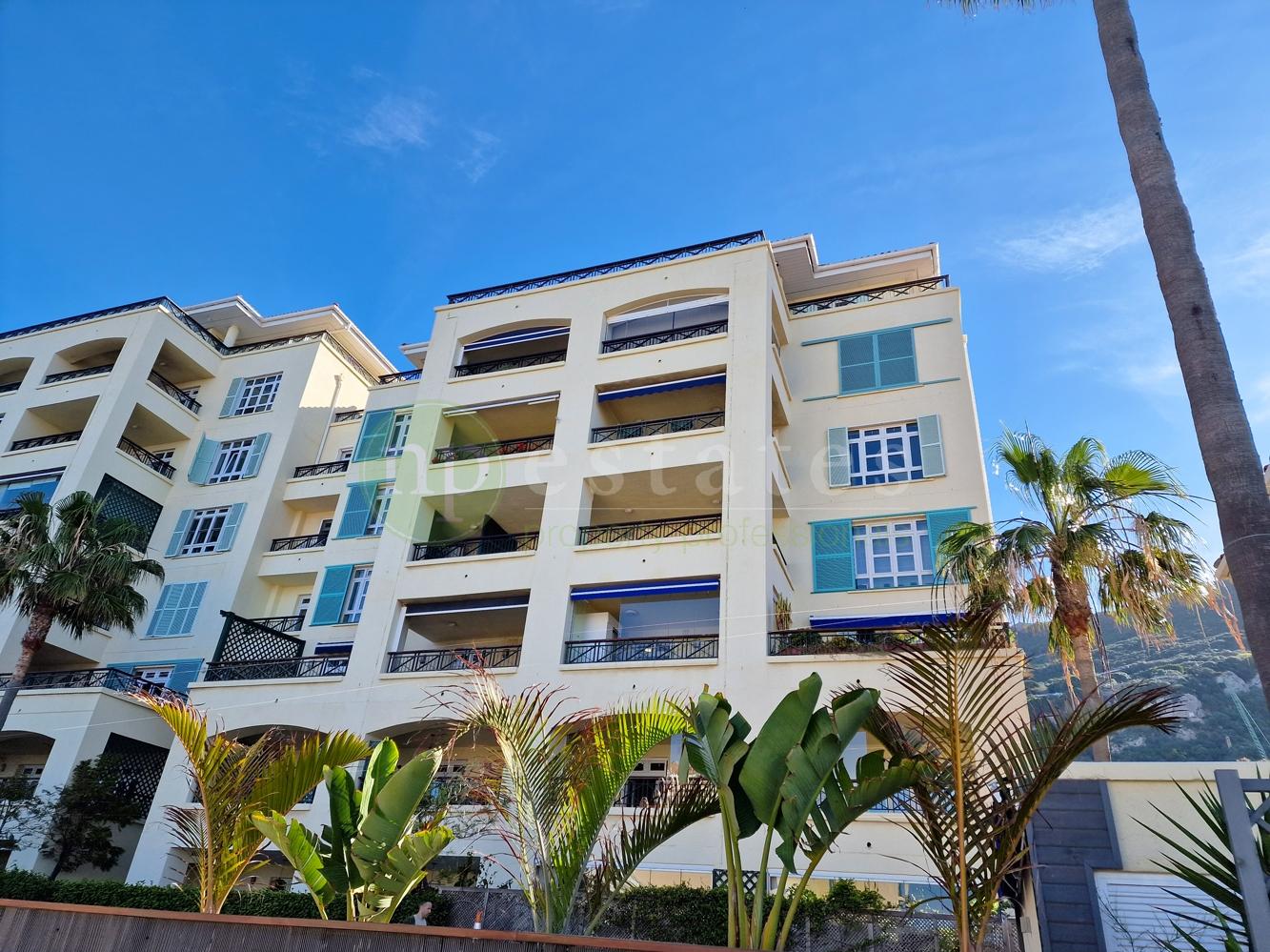 This elegant home enjoys spacious interiors throughout, with a bright open-plan living and dining area leading to a private terrace showcasing sea and Rock views. All bedrooms are generously sized, with ample fitted storage, and en-suite bathrooms.