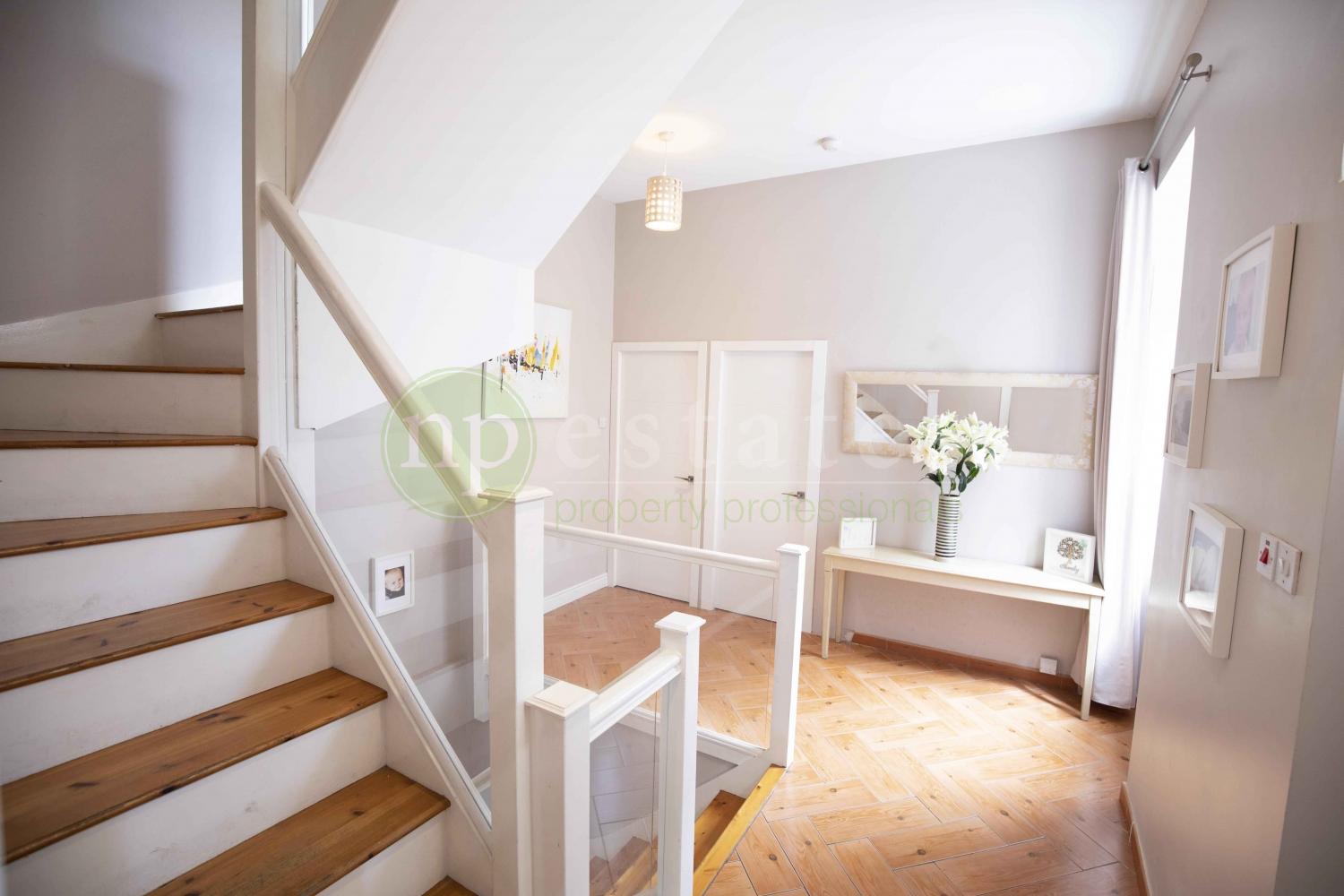 Further features include a private parking space with direct access to the property, a large ground-floor storage room, and the potential to reconvert part of the lower level into a self-contained one-bedroom apartment, previously part of the home’s original two-house configuration.