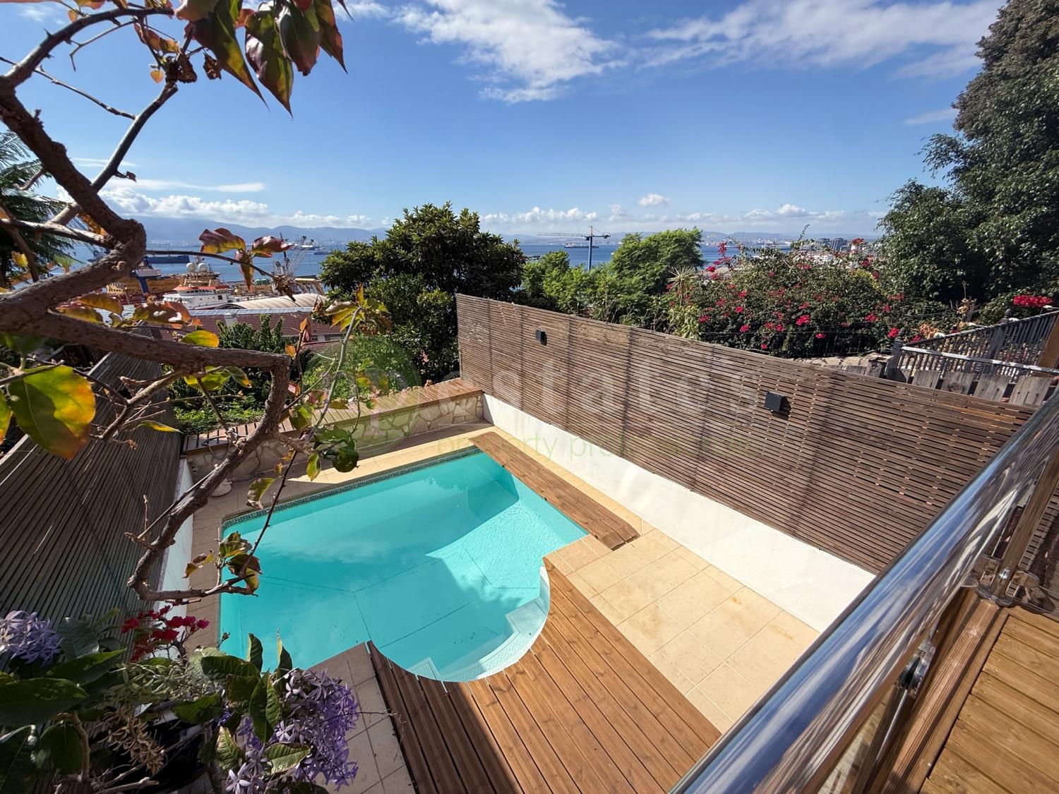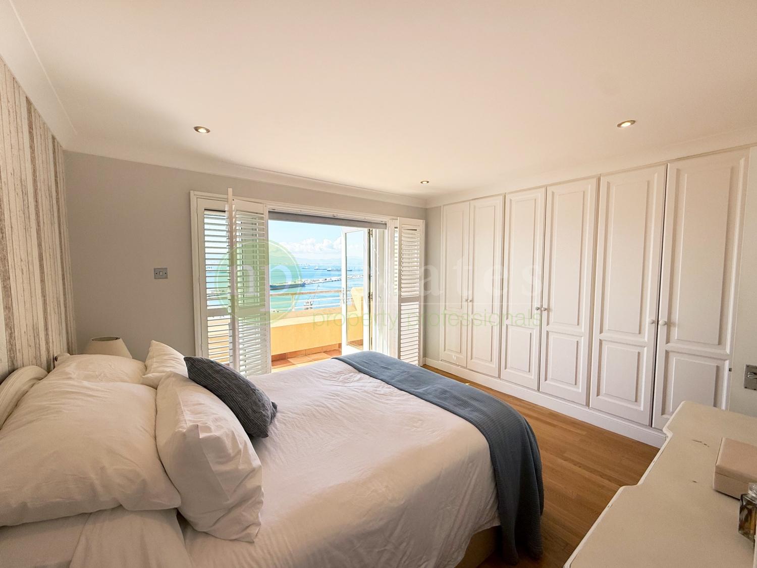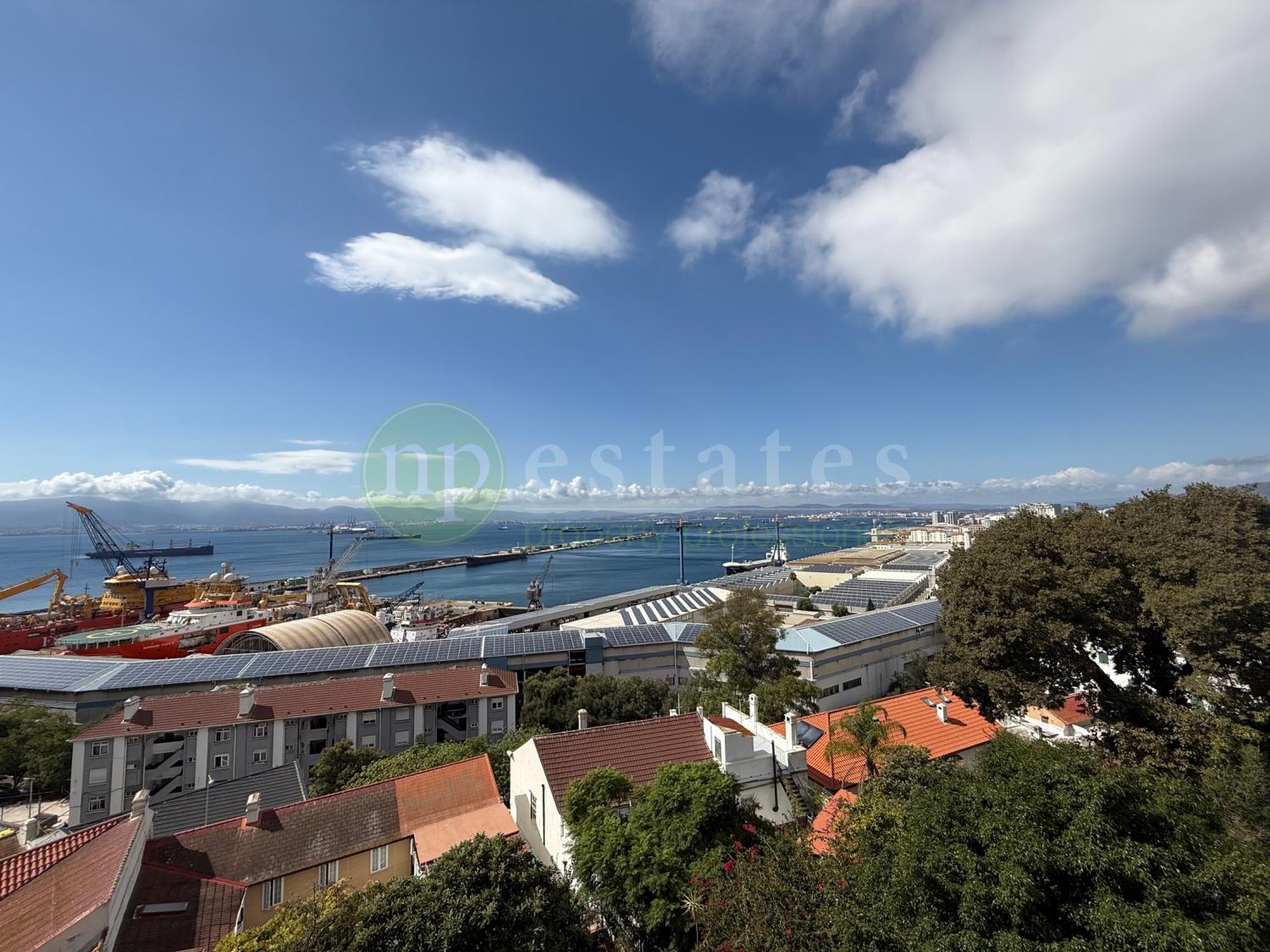 NP Estates is pleased to present this elegant four-bedroom, three-and-a-half-bathroom colonial townhouse in Gibraltar’s sought-after South District. Positioned to enjoy uninterrupted southwest-facing views across the Bay and Strait, arranged across four levels.