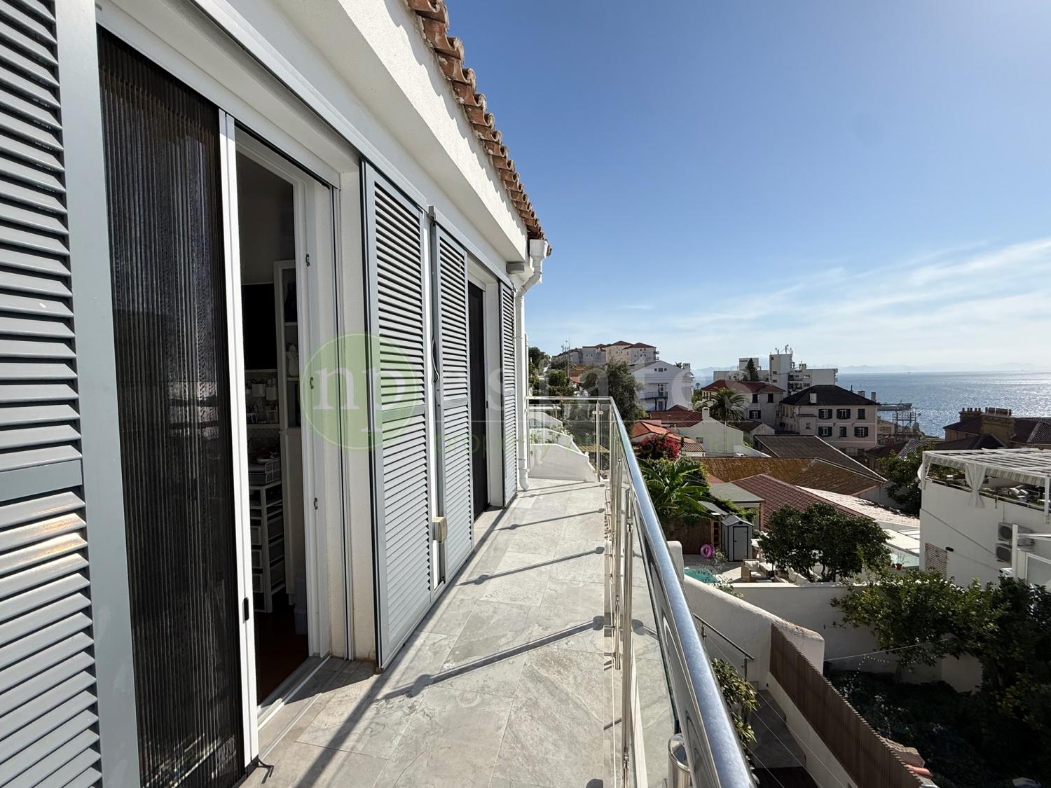 NP Estates is delighted to present this beautifully refurbished four-bedroom end-of-terrace townhouse located in Gibraltar’s South District. Set within a peaceful residential enclave, this exceptional home offers a rare combination of modern finishes, generous outdoor areas, and sea views extending across the Strait to Africa.